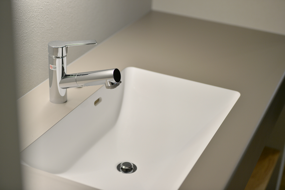 スタイリッシュなグレートーンの外観×開放感×回遊動線。道路側からはうかがい知ることのできないスタイリッシュな外観。大きなポーチから1歩室内に入ると、そこには明るく広々とした空間が広がっています。階段は玄関とダイニングキッチンを緩やかに区切り、オブジェのように印象的に存在しています。そして、その周囲をぐるぐると回ることができる回遊動線となっています。建築家:中田 啓予