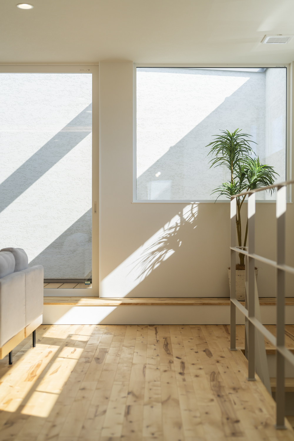 中庭を介して、光・風・視線の抜けを巧みに取り入れています。